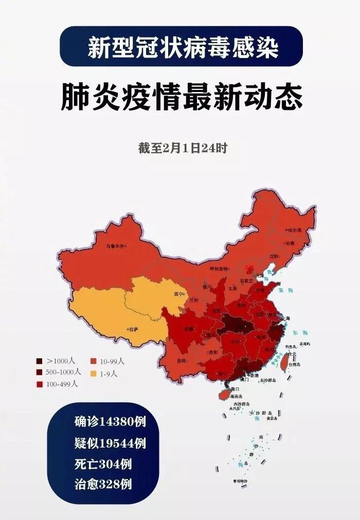 截止2月1日24時,全國新型冠狀病毒感染肺炎疫情最新動態如下: