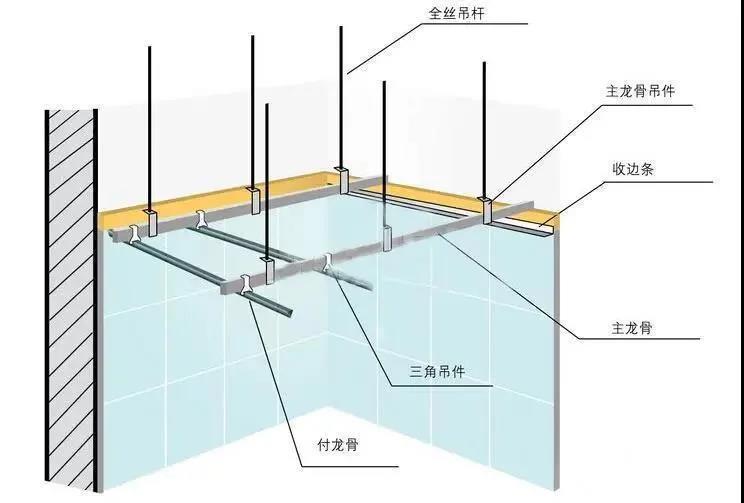 4、集成吊頂工期短,施工流程:頂部打絲桿→安裝龍骨及配件→安裝模塊→完工,一般一戶人家裝一個客廳吊頂只需1-2天時間。