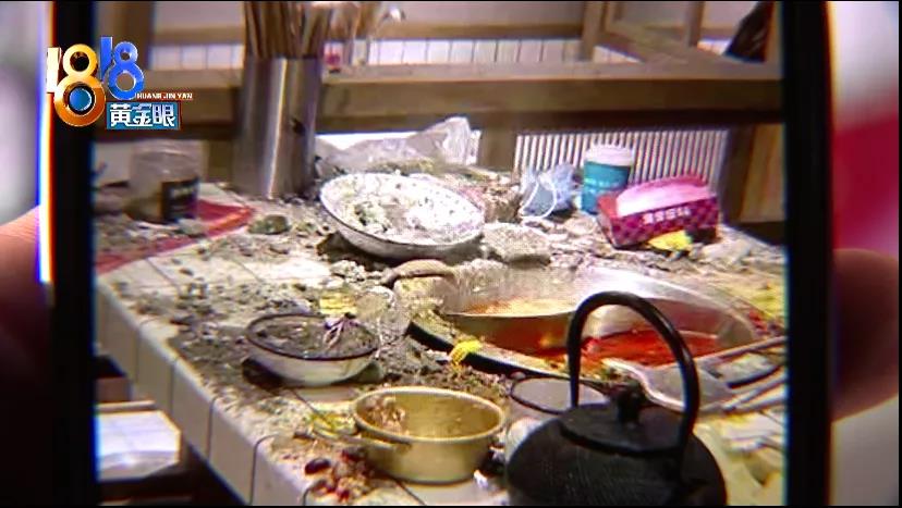 他們提供了照片,餐桌一片狼藉,旁邊座位上有塊板子,已經破損,上面沾有湯汁。