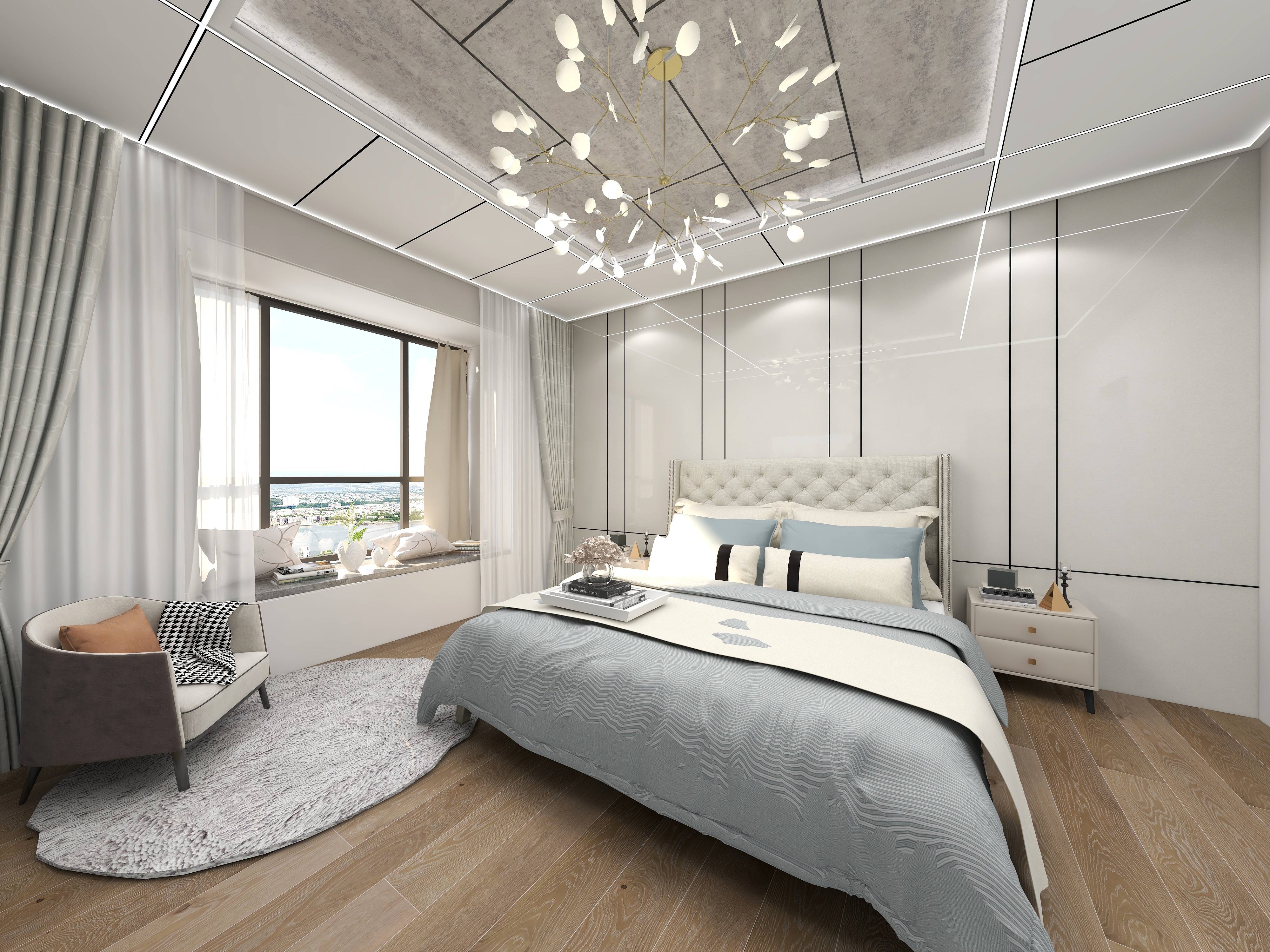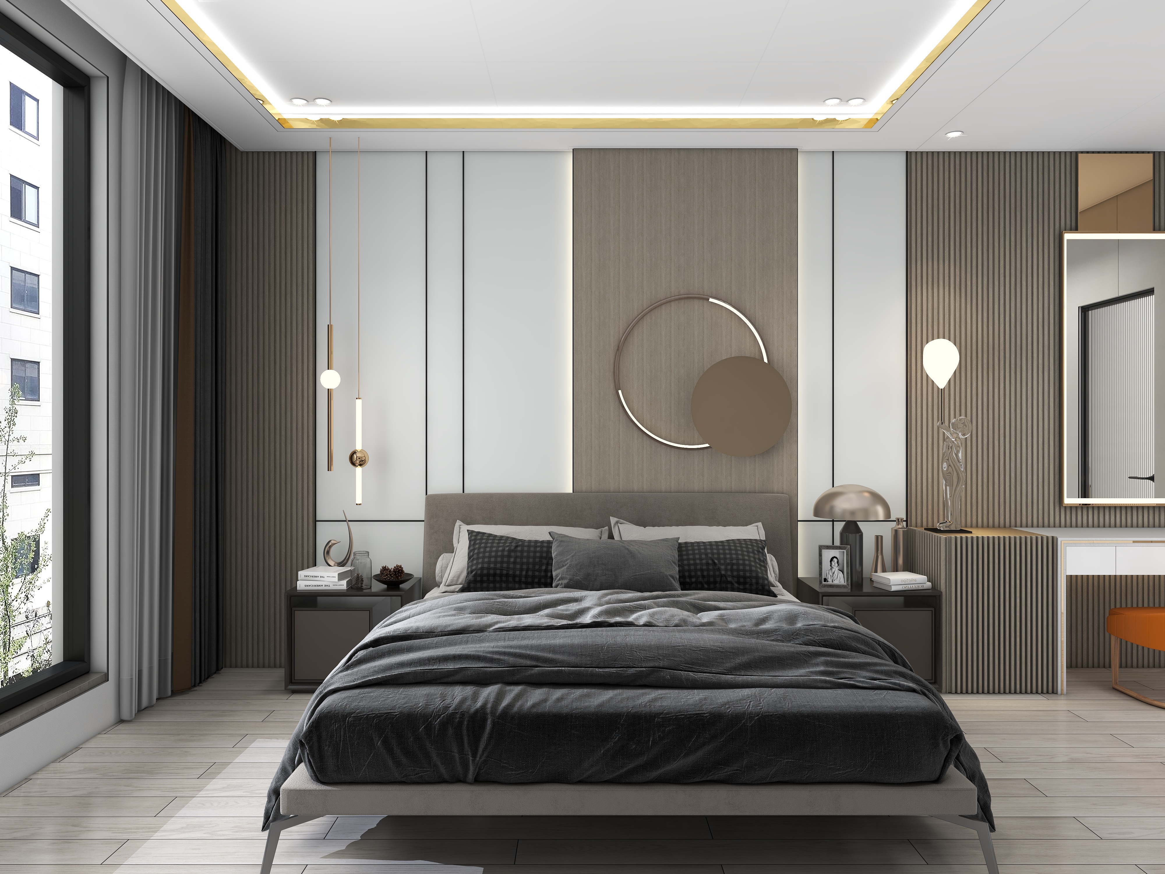 以色彩、材質的碰撞,有內涵而不張揚,搭配精致、線條流暢利落的家具,點綴質感金屬線條來提升空間氣質與辨識度,視覺效果簡單明了。