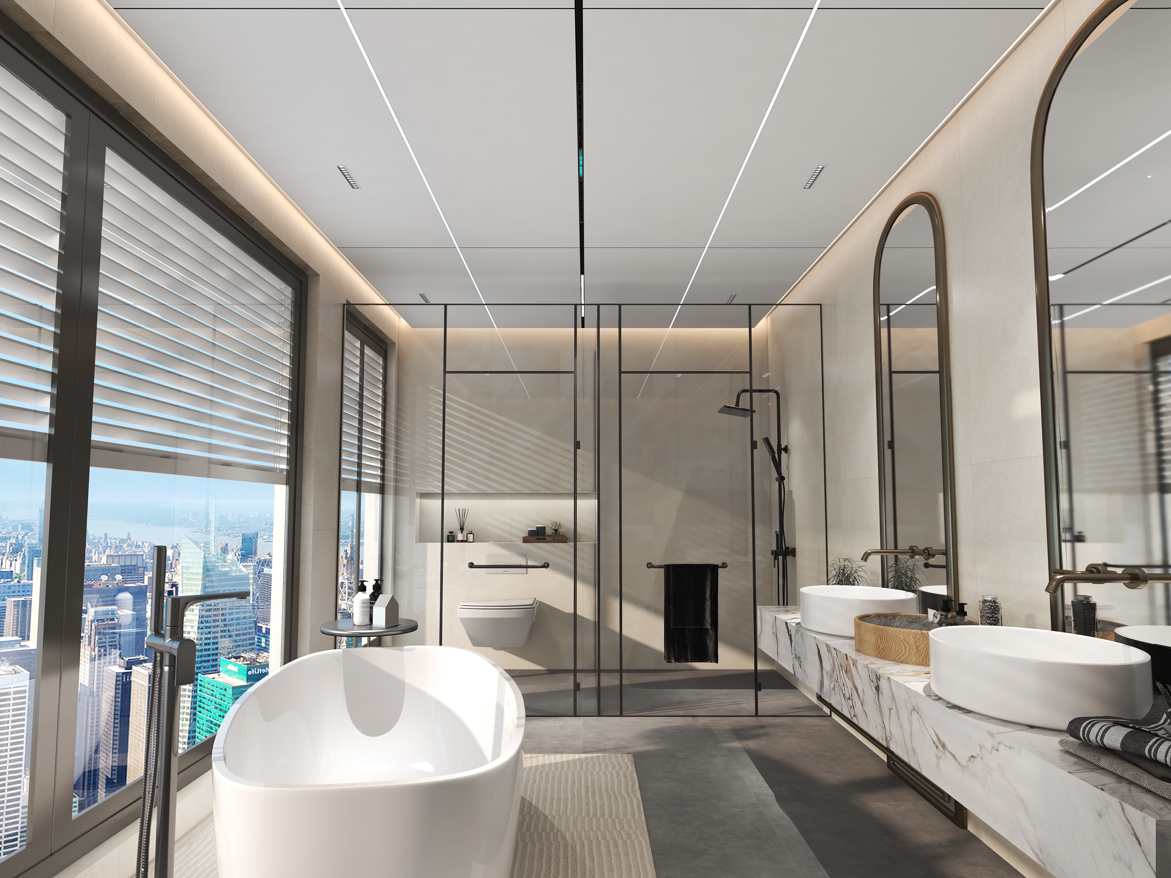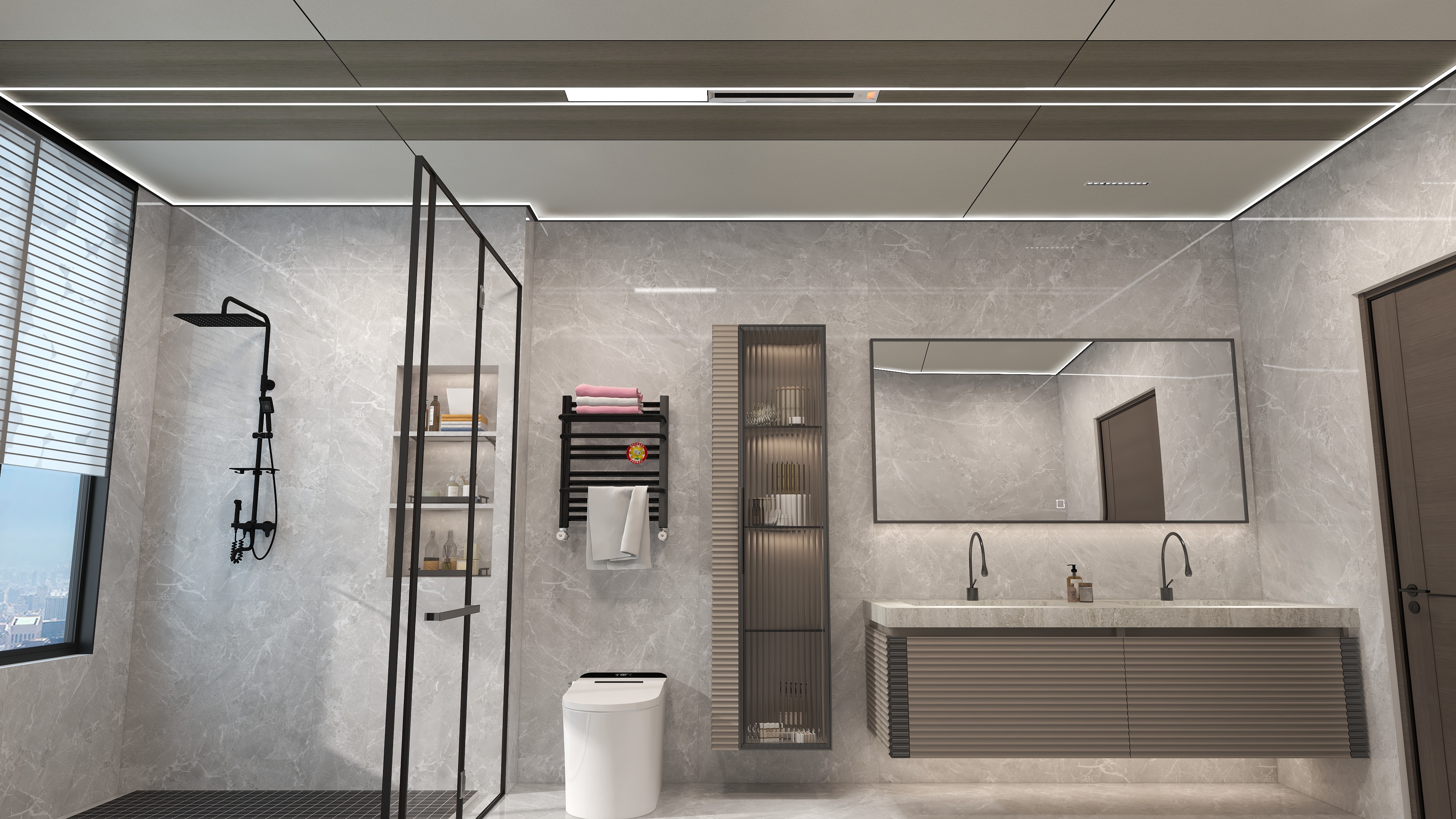 星雅圖浴室暖空調,搶眼又創新的線型造型,將照明功能和裝飾功能整合在一處,實用之余又充滿趣味,讓衛浴空間更有腔調。