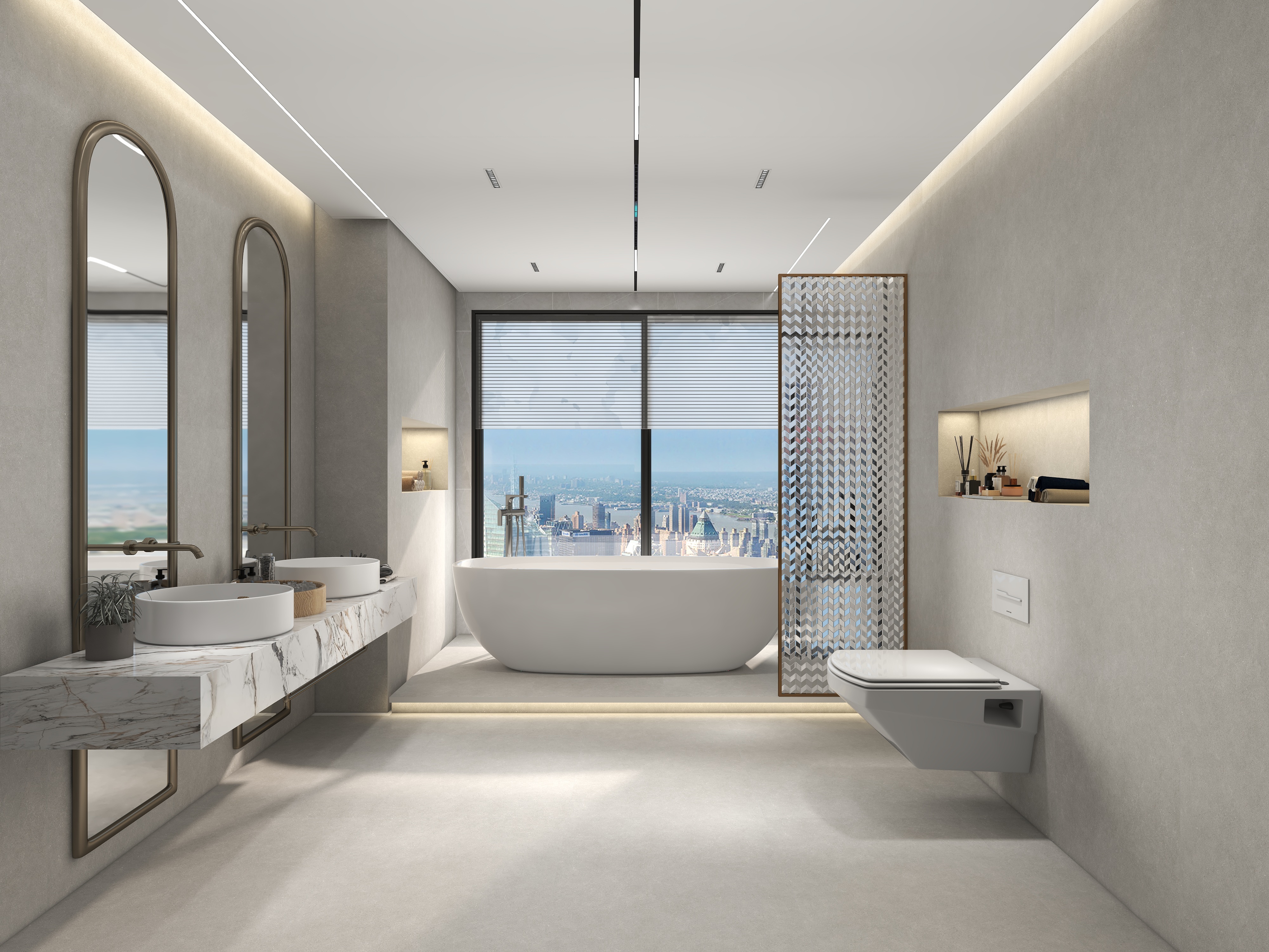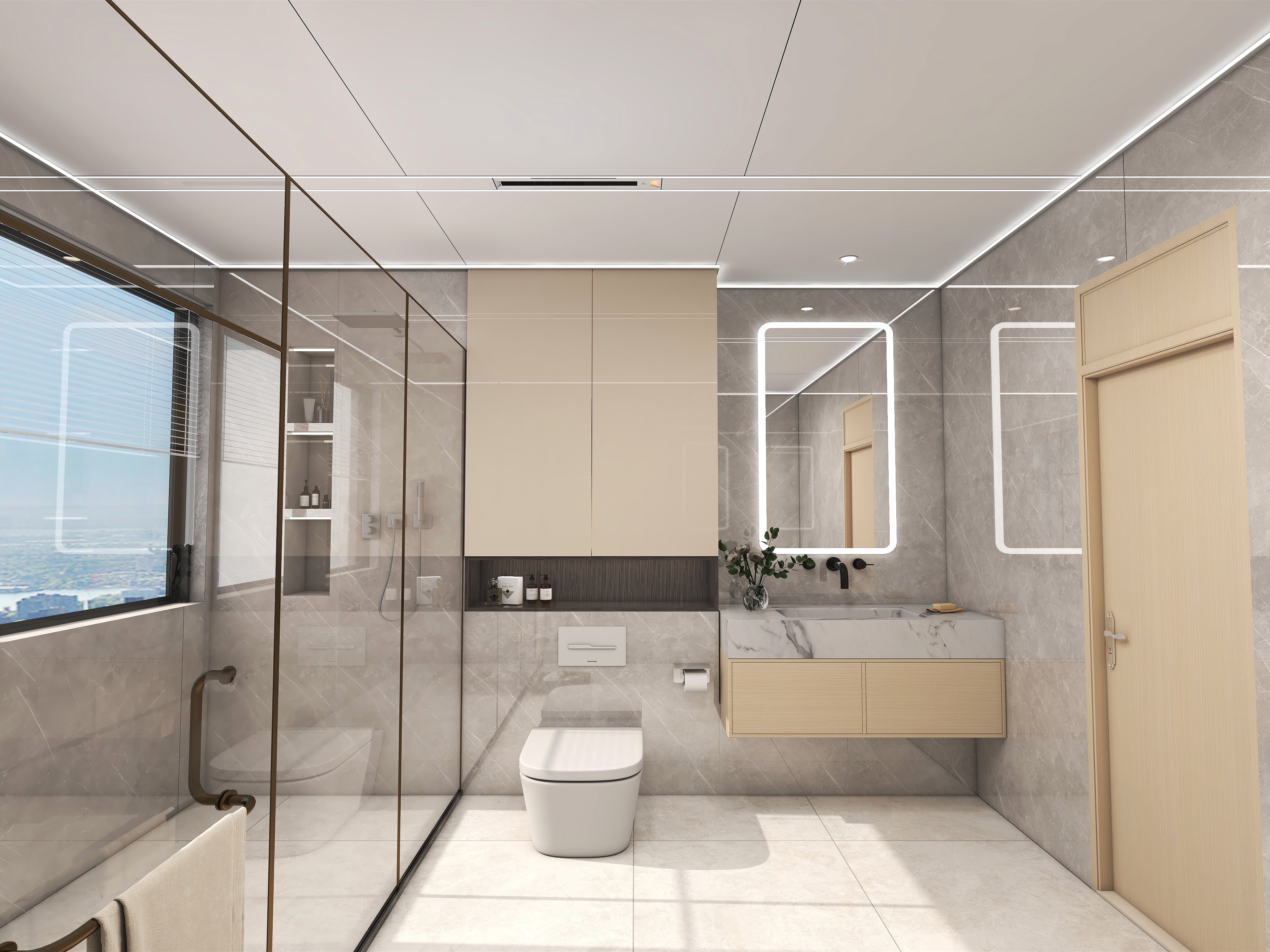 柔美暖色LED光源,配合質感反光燈槽,避免直射眼睛。星雅圖浴室暖空調溫潤如月,彌散在家的四周。這是一份在深夜讓人享受的舒適光線,只屬于家的光線。