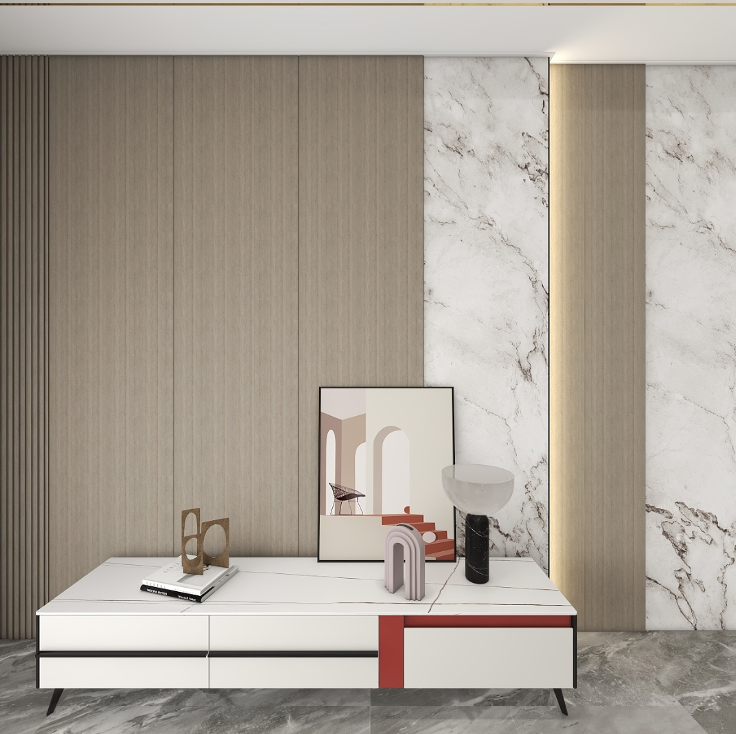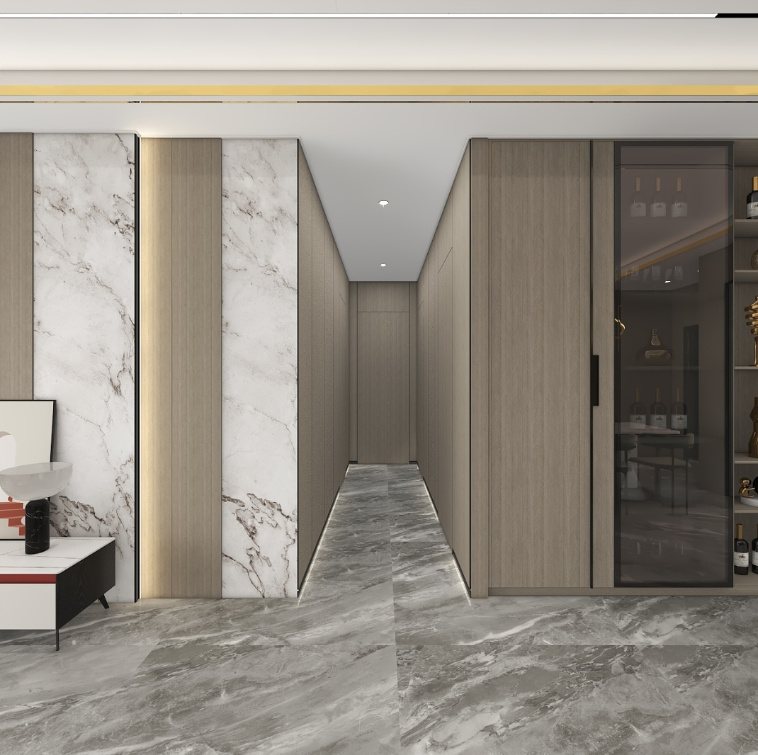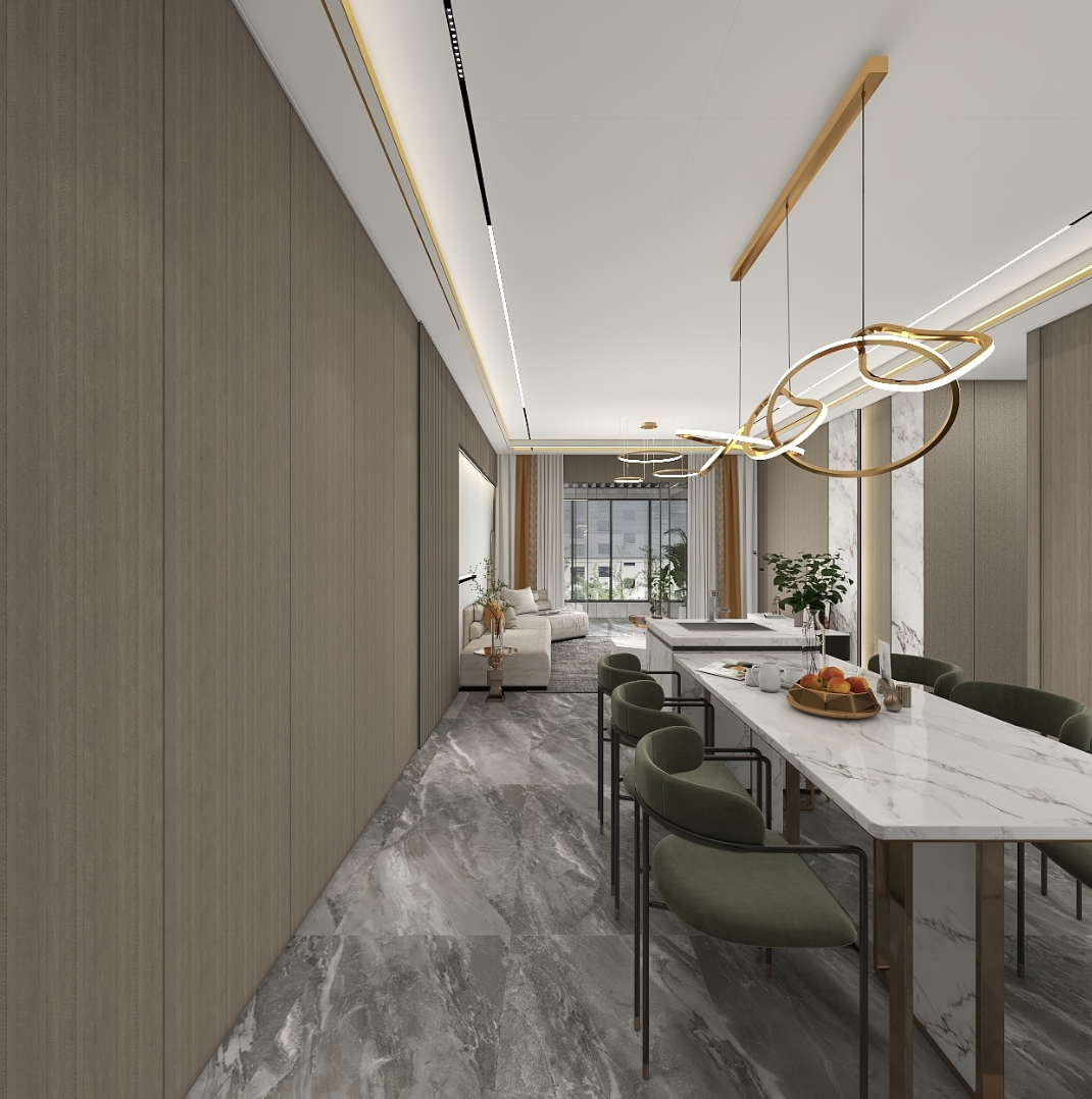 意式輕奢的高級感源于色彩的搭配,精髓在干“少即是多”,追求真實自由。本案整體以暖咖色為基調,所使用的星雅圖環保水性木紋飾面溫潤質樸,給人以一種舒適的松弛感,大理石紋與木紋飾面以自然原始的肌理,為空間注入無限生機,搭配燈光,空間更加有氛圍感,含蓄而高級。