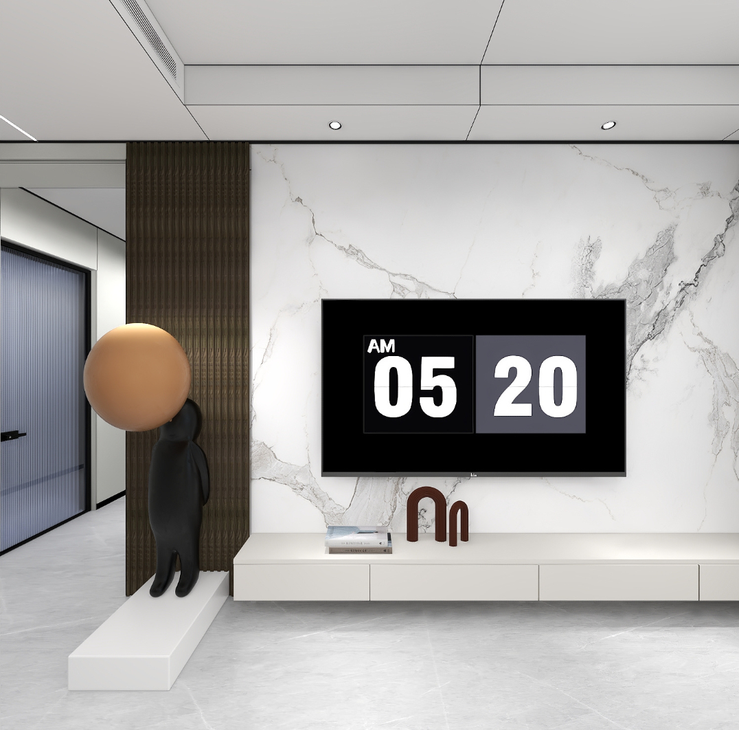 木色格柵搭配白色大理石紋墻板,拂去清冷,營造素雅溫馨的家居氛圍,整體干凈又簡潔,質感滿滿。