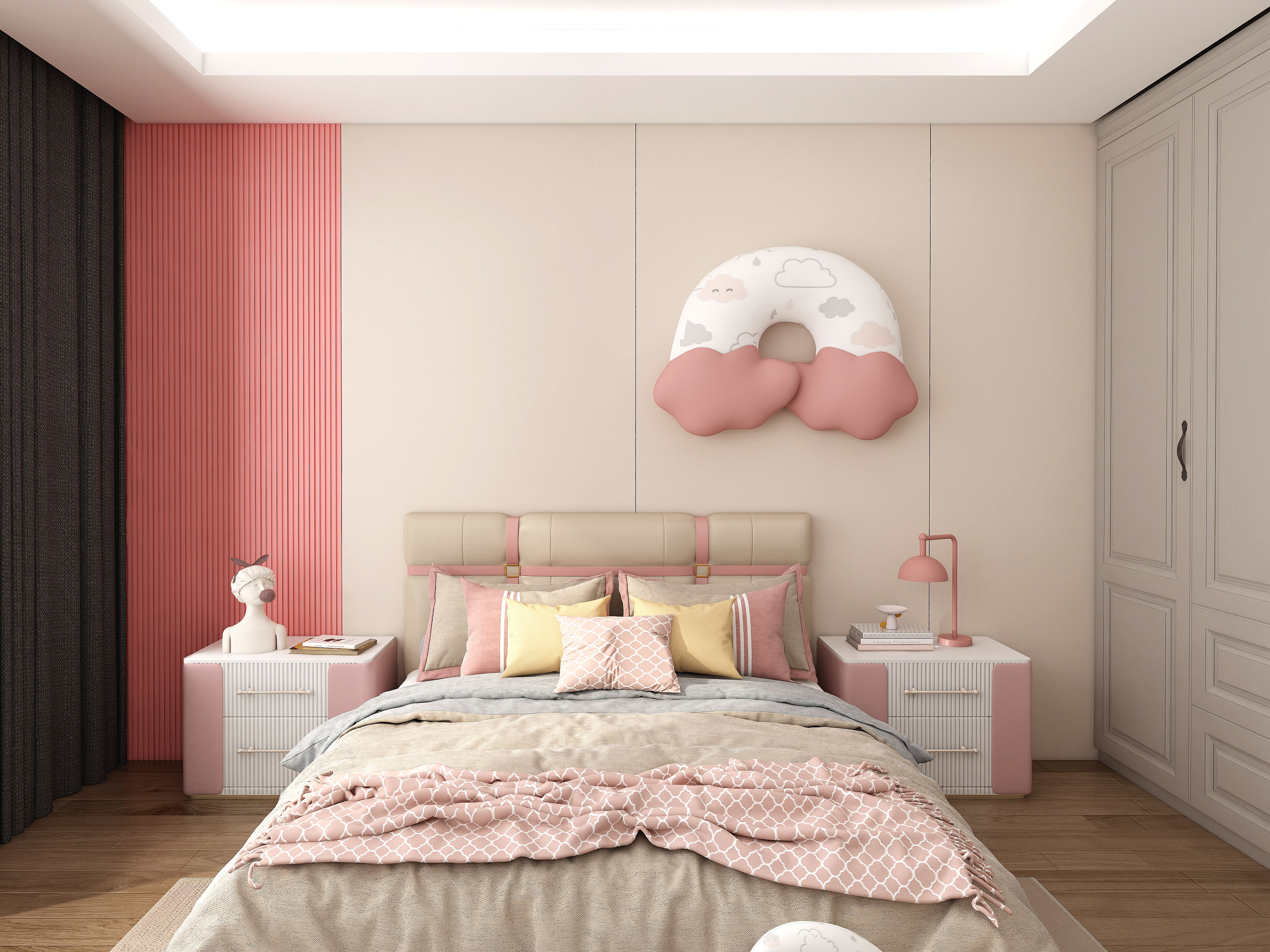 暖色調的臥室真的太治愈啦,粉嫩嫩的配色好少女
