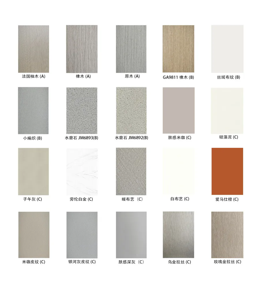 產(chǎn)品提供多種顏色選擇,包括純色、金屬、石紋、鏡面和布紋等等,滿(mǎn)足不同客戶(hù)的需求。讓您的空間更加豐富多彩。