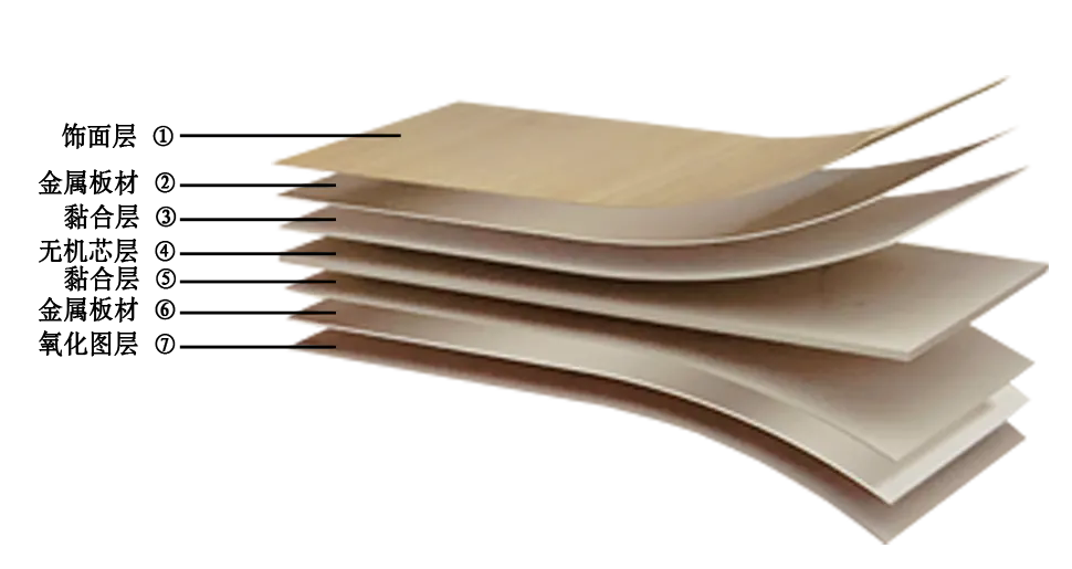 無(wú)機(jī)芯層:芯板采用不燃無(wú)機(jī)材料,經(jīng)充分混合、熔融而成。