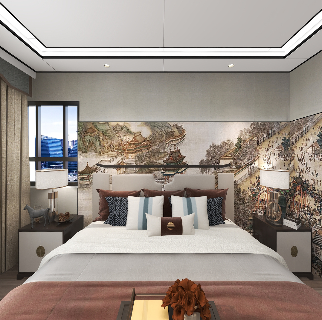 全屋頂墻定制 | 新中式 | 臥室背景墻里的詩情畫意。
